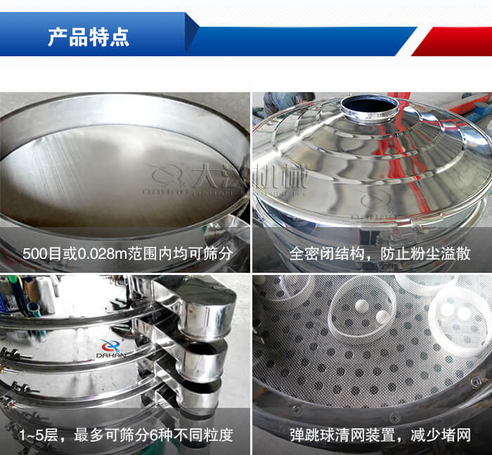 【優勢】:①可以篩分至500目;②彈跳球清網裝置,無堵網現象;③全密閉結構,防止粉塵飛揚