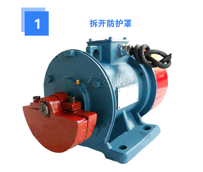 要放松振動(dòng)電機(jī)防護(hù)罩的緊固螺釘,拆下振動(dòng)電機(jī)兩端的防護(hù)罩。