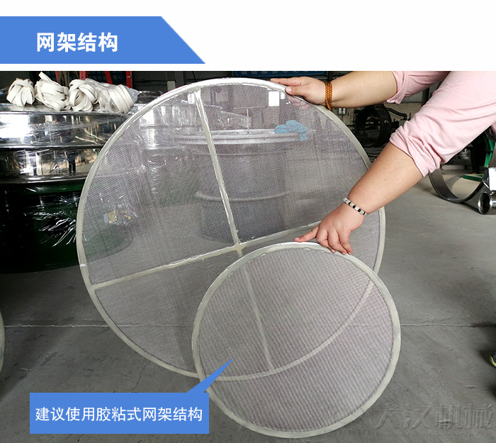 旋振篩設備常見的網架結構有老松式網架、子母網、膠粘網架三種,而就漿液物料的生產來說使用老松式網架或子母網生產時由于篩面承受的激振力過強,所以當漿液進入篩面在強大的激振力作用下就會跳起引起跳漿問題。對于是網架結構的問題建議使用膠粘式網架結構。該結構篩網可以篩面運行軌跡柔和漿液物料進入篩面不會引起漿液的跳動從而解決跳漿問題。