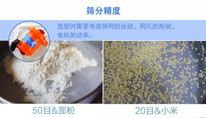 不銹鋼旋振篩篩分精度是由篩網和激振力來決定,所以優質的篩網和電機是不可缺失的,在選型時用戶需要考慮篩網的絲經、網孔的形狀、電機的功率。