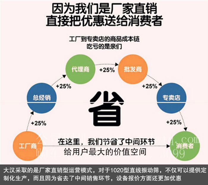 大漢振動機械采取的是廠家直銷型運營模式,對于1200型旋振篩,不僅可以提供特殊訂制生產(chǎn),而且因為省去了中間銷售環(huán)節(jié),設(shè)備報價方面還更加優(yōu)惠,保證讓您以較低的價格購得滿意的旋振篩設(shè)備。
